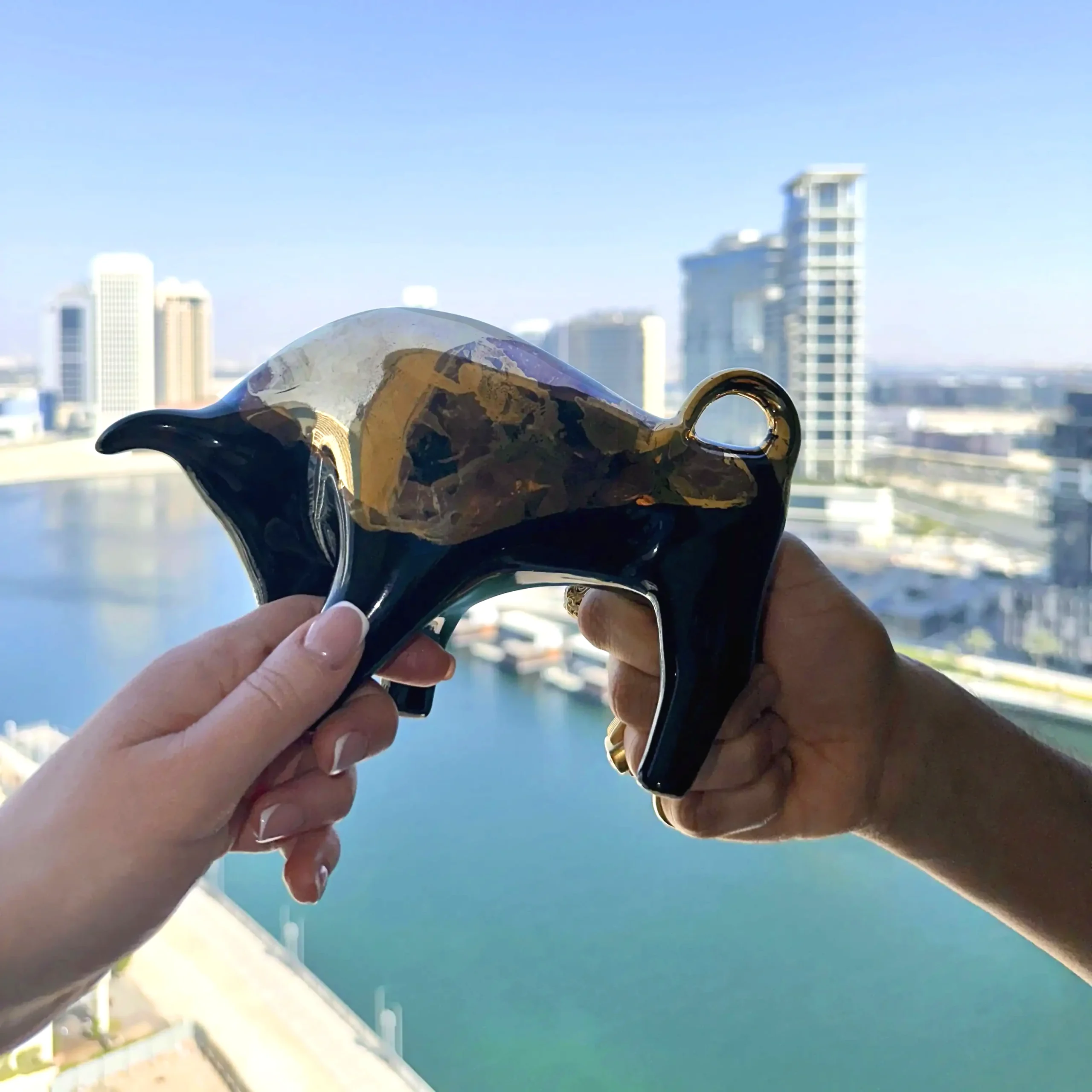 “Byk z kolekcji “Elegancka czerń” to prawdziwe dzieło sztuki. Bałam się o trwałość jednak myłam go już wielokrotnie i nadal wygląda tak samo pięknie jak pierwszego dnia. Jestem zachwycona. Dziękuję.”