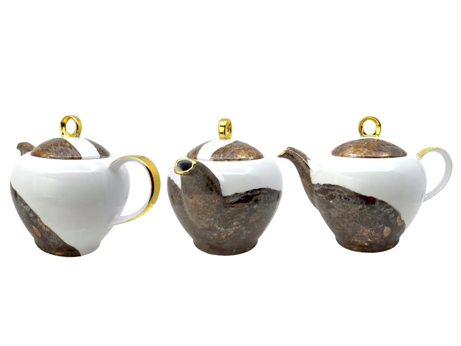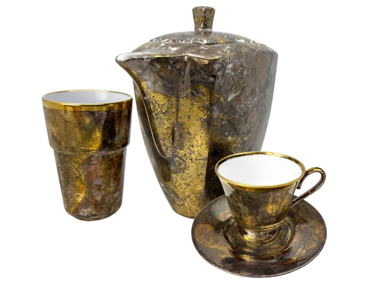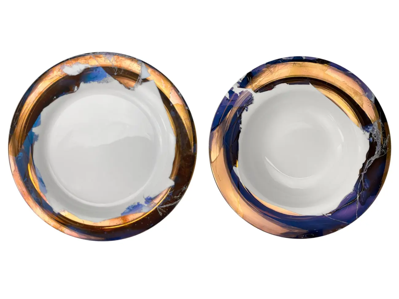 Sepia i złoto łączą się niczym symfonia wieków. Sepia otula porcelanowe naczynia w uścisku nostalgii, szepcząc opowieści z minionych epok. Tymczasem złote pociągnięcia, niczym promienie słońca przechodzące przez mgłę czasu, przywodzą na myśl królewską obfitość. Taniec kontrastów, w którym historia spotyka się z blaskiem. Razem sepia i złoto tworzą dzieło przechowujące szepty przeszłości i świetlistą obietnicę rozwijającej się przyszłości.
