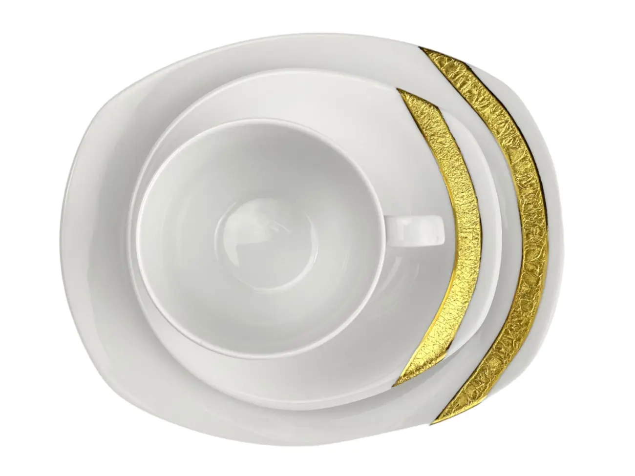 Złoto jest symbolem wysokiej wartości, duchowości, intelektu i charakteru. Stół nakryty talerzami błyszczącymi niczym skarby, stanie się metaforą dobrobytu, głębokiej refleksji i wewnętrznego piękna.