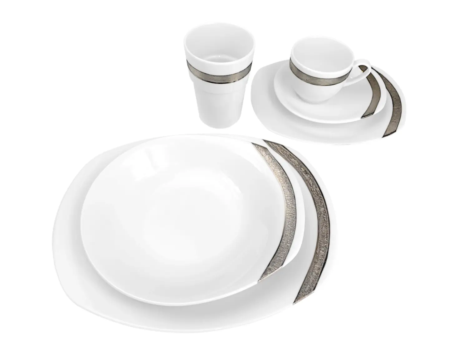 Srebro zawiera w sobie ogromną ilość symbolicznych znaczeń. Zastawa uczyni atmosferę przy stole wyjątkową, pełną refleksji. Malowana jest wzorem utrzymanym w abstrakcyjnym charakterze, który nawiązuje do wielopłaszczyznowej wartości.